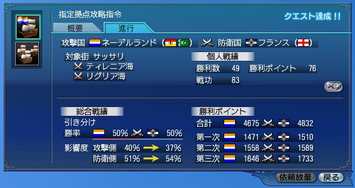 あ。大海戦はいつもの通り散々でした。